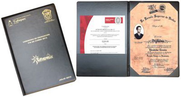 Carpeta porta-diploma carta MOD.CC07 en curpiel cosido con medidas de 31 X 24 X 2.5 cms alma de cartón , hule espuma en ambos lados 8 esquinas en curpiel cosido
